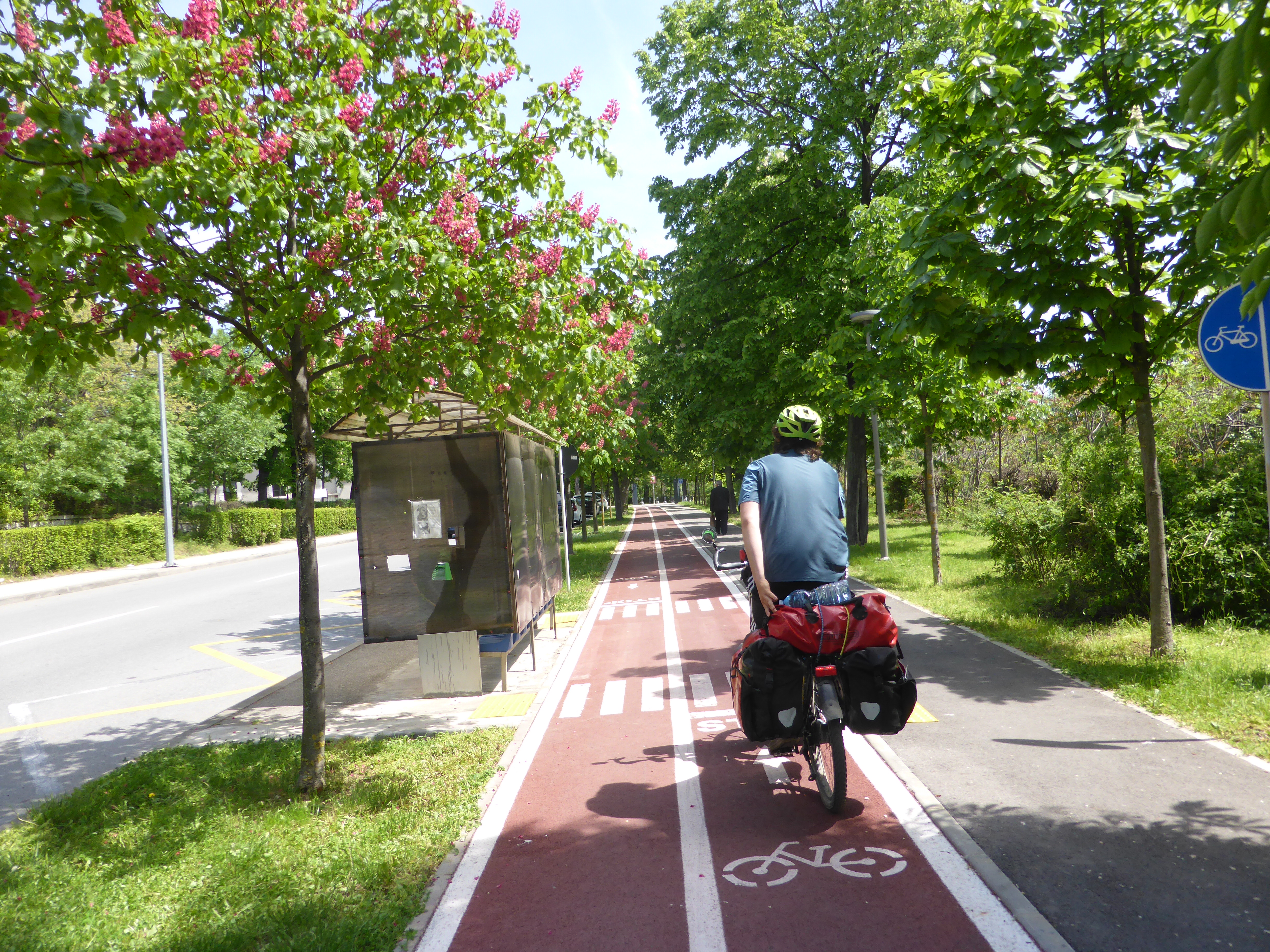Nach der Grenze ging es nicht ohne eine viel befahrenen Straße mit einigen LKWs in die nächste Stadt Drobeta-Turnu Severin. Hier gab es nen netten Radweg am Park entlang, aber wir waren nicht mehr so motiviert, heute viel zu fahren. Wir hoben erstmal Geld ab.