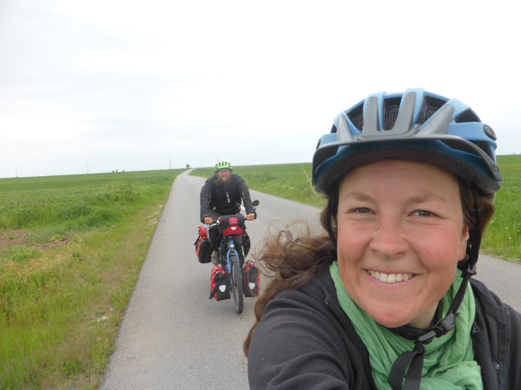 Der 3.5.23 war ziemlich bewölkt, so wurde es morgens im Zelt nicht gleich zu warm und wir konnten noch etwas liegen bleiben. Wir frühstückten noch an unserem Zeltplatz und fuhren dann gemütlich durch die Dörfer an der Donau entlang weiter. Der Wind wehte heute teilweise von vorne, der Seite, kurz auch von hinten, aber dann eher wieder von vorne.