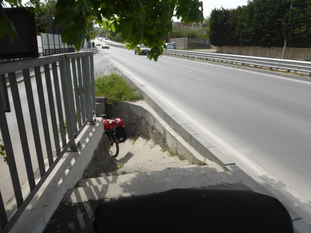 Am 16.05 sind wir von Balchik aus in Richtung Warna gefahren. Das ist die drittgrößte Stadt des Landes und zwischen Balchik und Warna befindet sich eine sehr gut touristisch erschlossene Region. Wir fuhren bei bestem Wetter los, es hatte ca. 25 Grad, was sich beim Sonnenschein schnell doch etwas warm anfühlte und genossen erstmal das Auf und Ab an der Küste. Nach ca. 15 Kilometern kam dann der Goldstrand, von dem wir nicht so genau wussten, ob wir ihn überhaupt sehen möchten, da er für seinen Partytourismus bekannt ist. Zum Glück war noch Nebensaison und viele Läden und Partyschuppen wurden erst neu angestrichen, ausgerüstet und dem allgemeinen Frühjahrsputz unterzogen. Mit dem Glück wenig deutschen Partyschlager aus dem „Partystadl“ und wie sie sonst noch heißen zu hören, genossen wir es an der Promenade entlang zu radeln und das türkisblaue Meer zu sehen. Nach einigen Kilometern war der Spuk vorbei und wir kamen auf die Hauptstraße, die uns in die Stadt führte. Mit dem Weg durch die Stadt und einem kleinen Einkauf waren wir dann vier Stunden beschäftigt. Der Weg wäre eigentlich ganz einfach gewesen, wenn nicht immer mal wieder eine Baustelle ohne Umleitung gekommen wäre oder der Verkehr sich nicht an den unzähligen roten Ampeln stauen würde. Ausweichen auf den Gehweg und schieben wäre oft schneller gewesen, nur waren die Bordsteine (auch an Zebrastreifen und Einmündungen) so hoch, dass es mit den Fahrrädern einfach nicht ging. Als wir dann den Smog und den Verkehr der Stadt – selbstverständlich wieder auf der Hauptstraße- verlassen hatten, fuhren wir noch 20 Kilometer durch dünner besiedeltes Agrarland und fanden einen guten Platz für unser Zelt am Rand eines Weizenfeldes.