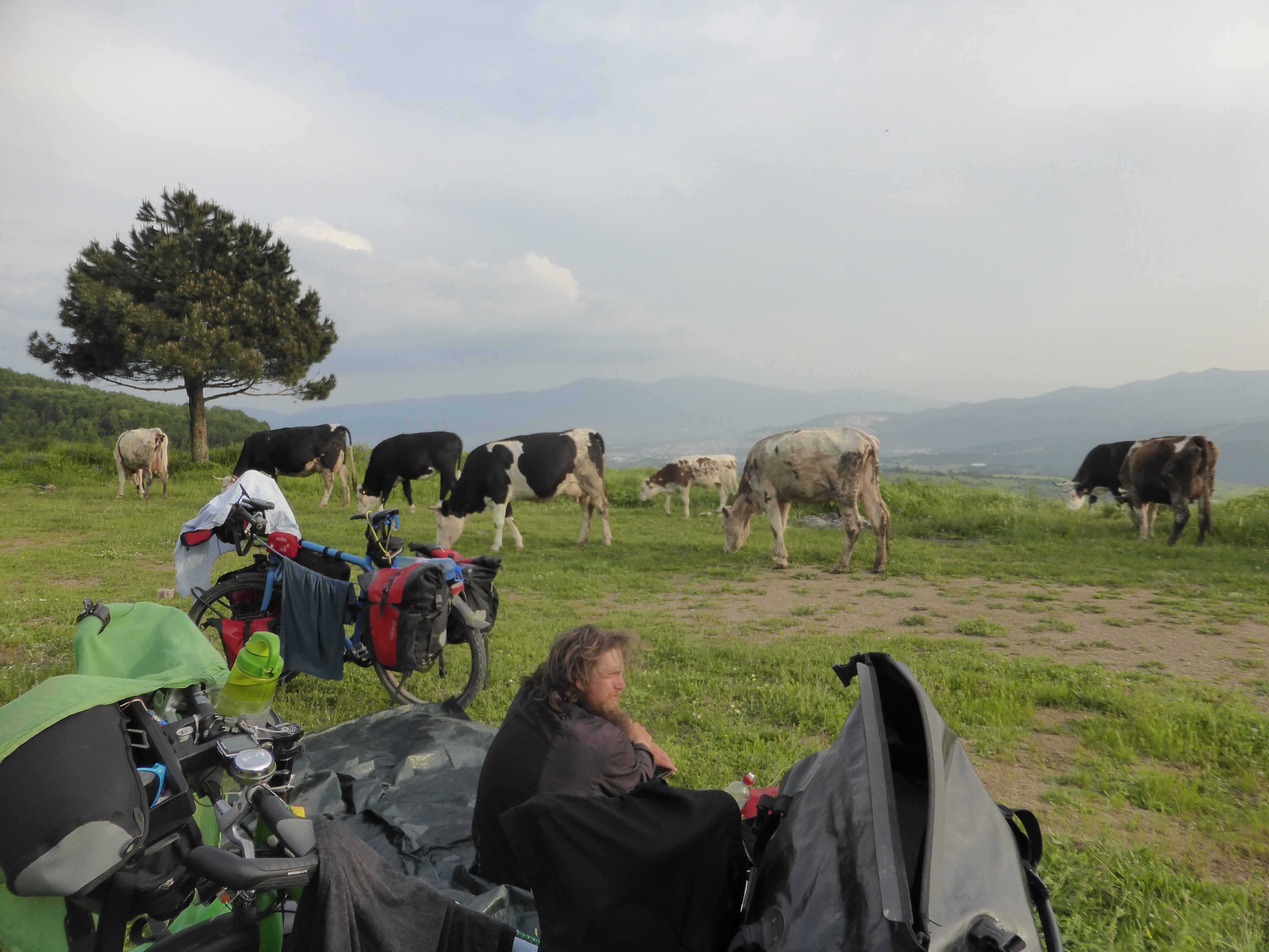 Als wir auf den 500 Höhenmetern ankamen, fanden wir einen so schönen Ort zum Zelten, dass wir beschlossen, heute Nacht hier oben zu schlafen. Abends kam noch eine Herde Kühe bei uns zu Besuch vorbei, kein Wunder, so lecker wie die wilden Kräuter hier um uns herum duften!