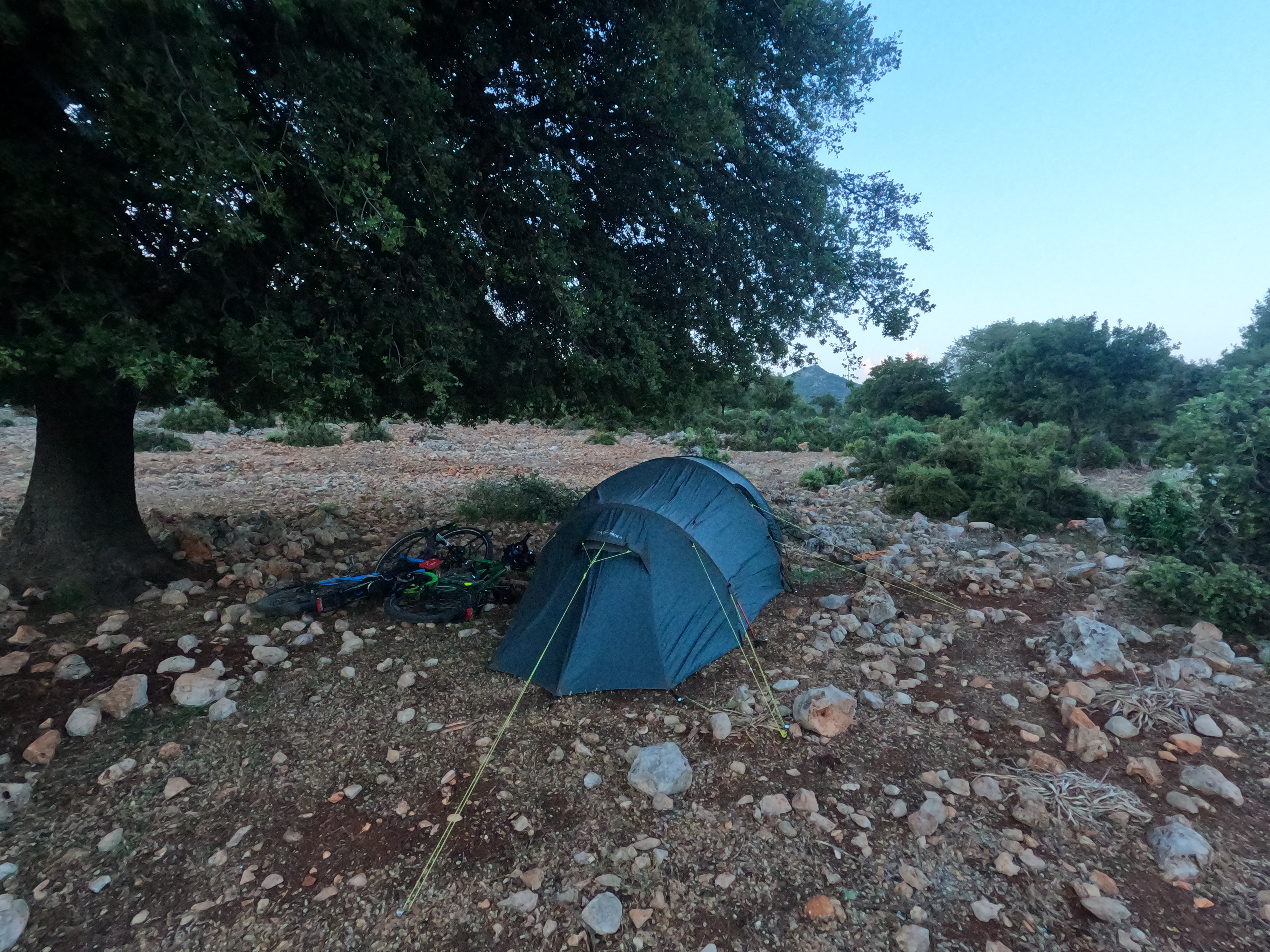 Einen kleinen Hügel aus diesem Dorf ging es noch hoch und dann fanden wir auf einer ebenen Fläche einen guten Platz für unser Zelt. Es wurde im Laufe des Abends immer windiger, sodass uns sogar kalt wurde. Daher bauten wir unser Zelt auf und machten es mal mit allen Schnüren fest. Die Nacht war mit dem gemütlichen Windrauschen am Zelt sehr erholsam.