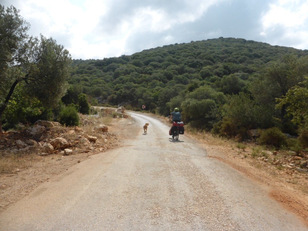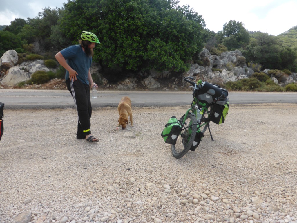 Einige Kilometer weiter, auf etwa 200 Höhenmetern war ein kleines Dorf mit anderen Hunden und da entschied sich die Hündin, dort zu bleiben. Wir fuhren weiter den Berg hinauf. Auf 600 Meter, wo wir wieder die Aussicht genießen konnten.