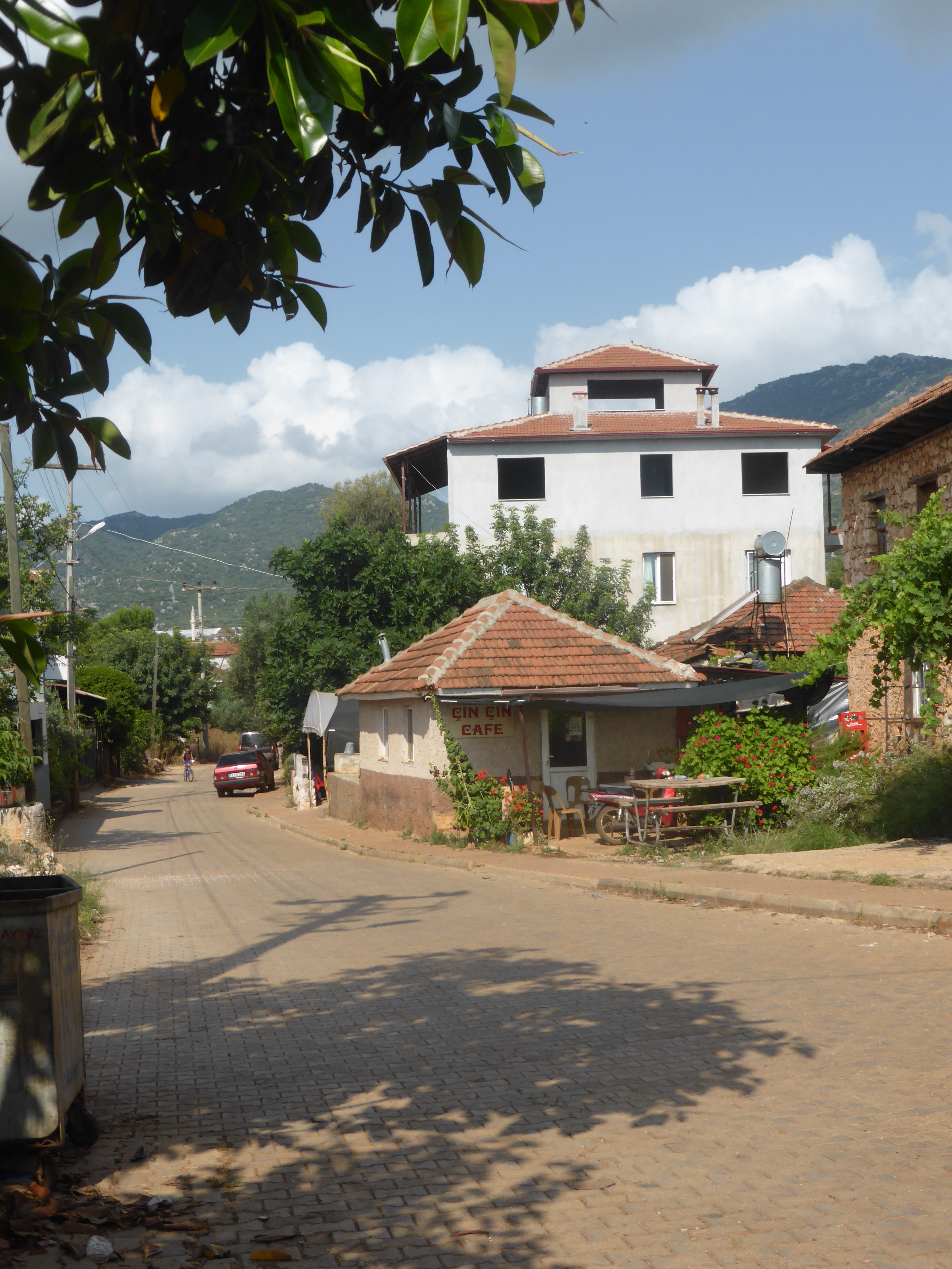 Die Menschen benutzen ihre Autos wohl vor allem in den Dörfern, denn zwischen den Dörfern sahen wir richtig wenige Autos, aber im Dorf ist viel motorisierter Verkehr. Dann ging es weiter den Berg hinab zum Meer. Wir kamen nach Demre, einer Stadt, die von oben gesehen mehr aus Gewächshäusern als aus Häusern besteht. Wir fanden dort aber einen Supermarkt und fuhren dann weiter an der Küste entlang.