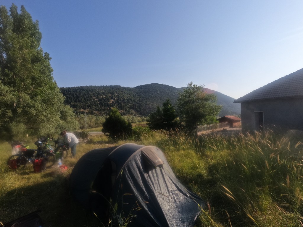 An dem Ort war richtig was los, immer wieder kamen Leute, um Wasser zu holen oder Familien zum Picknicken. Wir fanden zwischen Quelle und Moschee einen guten Platz für unser Zelt und beschlossen, dort zu bleiben. Das Zelt wollten wir aber erst in der Dämmerung aufbauen um nicht zu viel Aufmerksamkeit zu erregen. Wir saßen dort, beobachteten, was so passiert und lernten Vokabeln. Dann kam ein Vater mit seinen Kindern, um dort Abendessen zu machen. Sie luden uns ein, mit ihnen zu essen, wir lehnten erstmal freundlich ab, wurden dann aber doch nochmal darauf hingewiesen, dass es genug Essen für alle gibt, und wir mindestens einen Tee mit ihnen trinken sollten. Das machten wir natürlich gern und am Ende aßen wir auch zusammen, die Familie war gerade auf dem Rückweg aus dem Urlaub und machte dort den Zwischenstopp auf halbem Weg. Wir verabschiedeten uns, machten noch ein Bild und wünschten uns gegenseitig eine gute Fahrt. Dann bauten wir unser Zelt auf und gingen früh schlafen. Die Nacht war relativ kühl, sodass wir seit langem Mal wieder unsere warmen Schlafsäcke nutzen und uns richtig schön darin einkuscheln konnten.