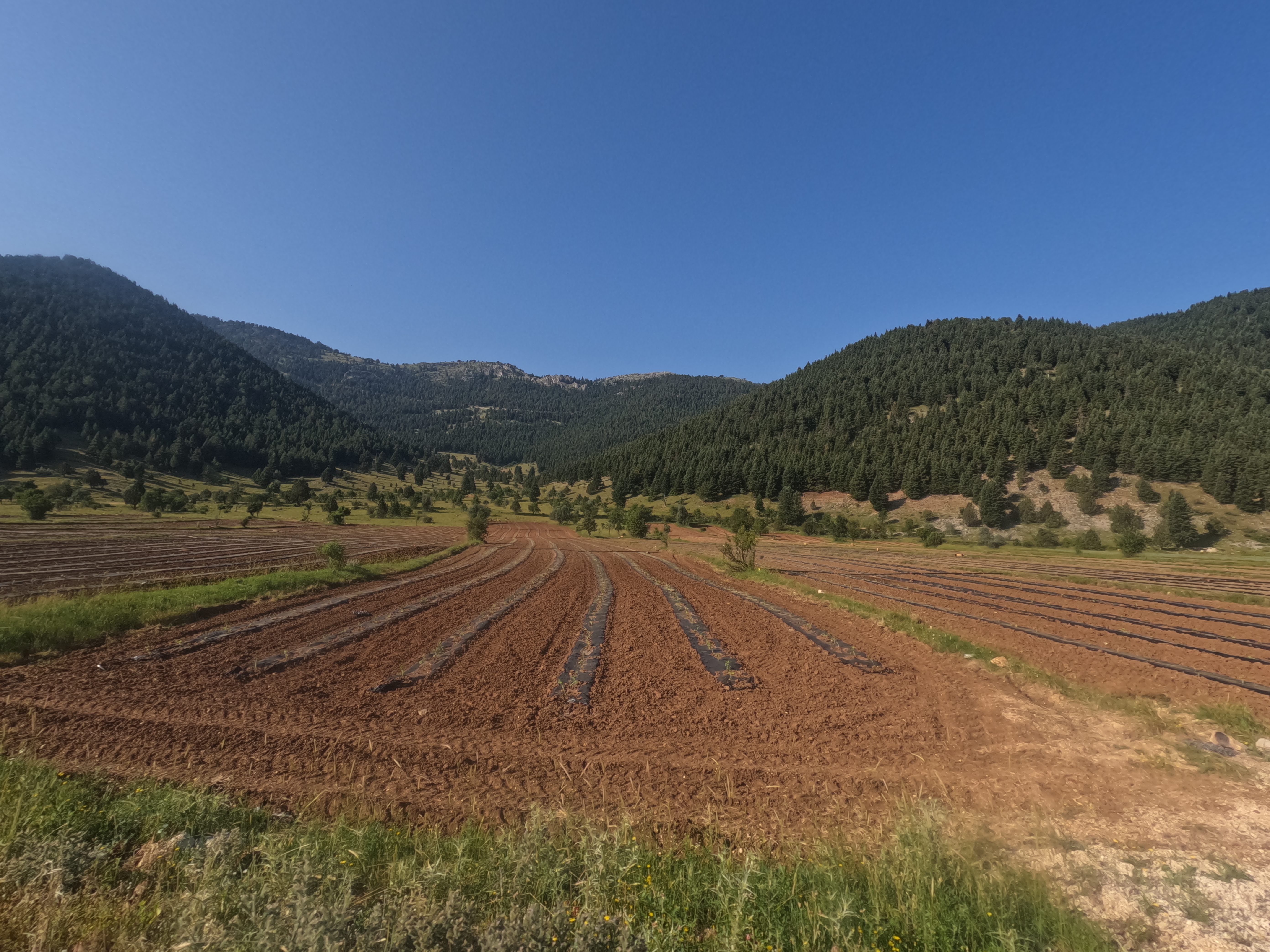 Für uns ging es weiter, erst durch das Tal und dann wieder weiter nach oben bis auf gut 1300 Meter. Kurz vor der Kuppe wollten wir noch eine kurze Pause einlegen. Gerade als wir dafür anhalten wollten, hupte ein LKW hinter uns. Der Fahrer gab uns eine Flasche mit gekühlter Limonade und wünschte uns eine gute Weiterfahrt. Wie gut! Wir wollen Pause machen und bekommen genau dann etwas Kaltes zu Trinken. Als Snack gab es Schichtwaffeln und eine Banane dazu. Es ging etwas bergab und wurde dann flacher. Auf einer Seite der Straße war der Berg und auf der anderen ein relativ enges aber landwirtschaftlich sehr intensiv genutztes Tal. Uns fiel sofort die feuchte Luft auf, so feucht war sie schon seit längerer Zeit nicht gewesen und wir freuten uns über die Felder mit verschiedenen Getreide, Erdbeeren oder Wassermelonen.