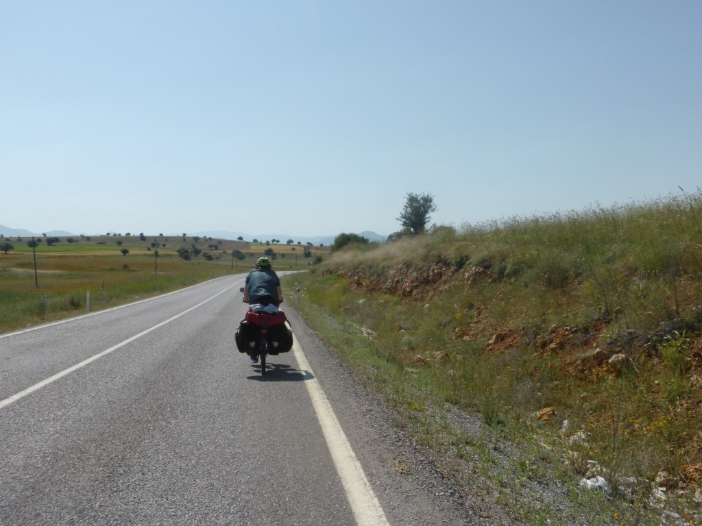 Bei unserer Hotelübernachtung war das Frühstück dabei, denn Radfahrende müssen ja gestärkt in den Tag starten können! Von Beyşehir ging es lange leicht bergab durch die Felder. Irgendwo zwischen Weizen und Wassermelonen zeigte unser Tacho an, dass wir jetzt schon seit 5000 Kilometern unterwegs sind!