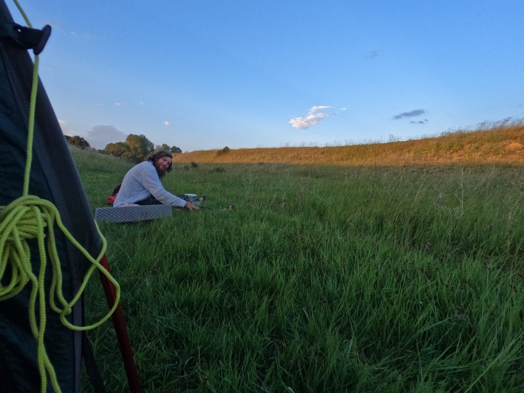 Abends fanden wir einen Schlafplatz in einem trockenen, aber mit Gräsern bewachsenem und gemähten Bachbett und fragten uns, ob es schlau sei, darin zu zelten, wenn man dunkle Wolken aufkommen sieht…