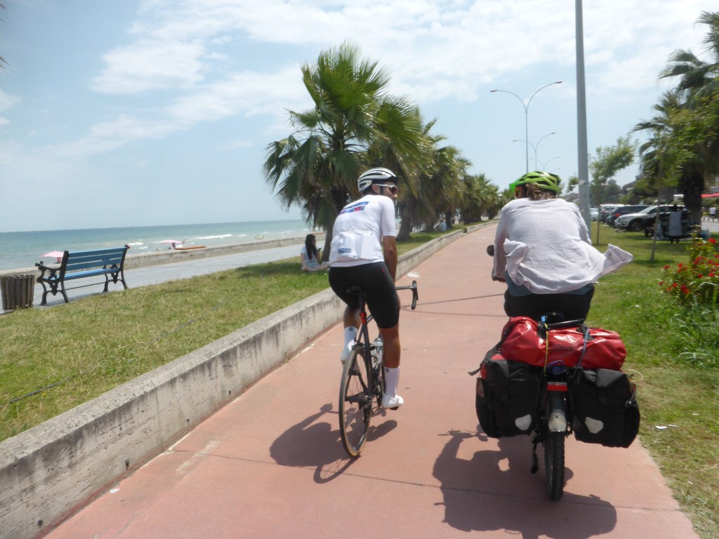 Schweren Herzens verabschiedeten wir uns am Samstag, dem 15.7. morgens von Nesrin, weil wir eine wunderschöne Zeit bei ihr in Samsun hatten. Aber wir wollen ja weiter die Welt erkunden, also fuhren wir los auf dem Fahrradweg am Strand in Samsun entlang nach Osten.