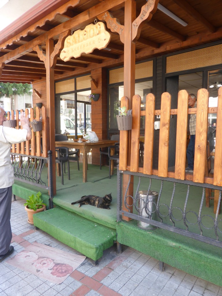 Wichtig dabei ist nähmlich, wir schlafen im ersten Stock von Mustafas Café, das eigentlich ein klassisches Teehaus ist. Unten sitzen die Männer und beraten über die Welt, trinken Tee und spielen Rummikub und oben ist die Welt zu Gast. Hier kommen scheinbar fast täglich Radreisende für einen Zwischenstopp vorbei. Um Mitternacht schloss das Kaffee und wir gingen ins Bett.