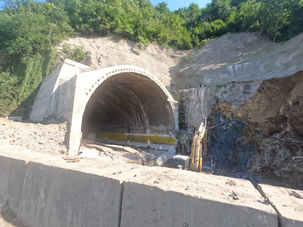 Diese volle Straße führte uns in ein langes Tal, durch das gerade eine größere Straße gebaut wird. Die neue Straße wird durch viele Tunnel und über viele Brücken führen. Wir fuhren an vielen Teilbaustellen vorbei.