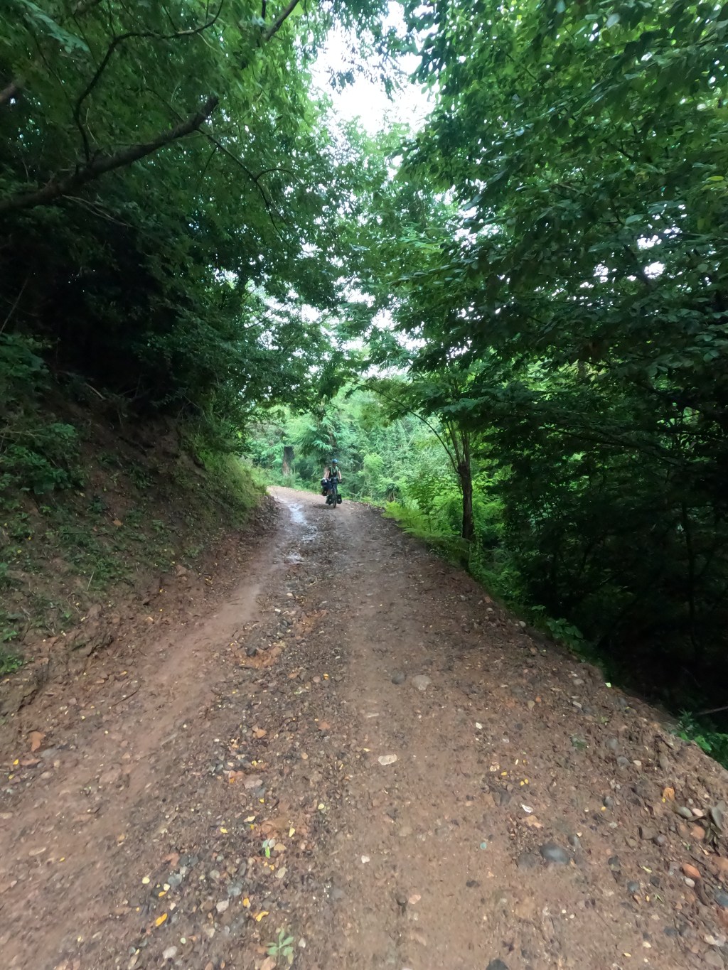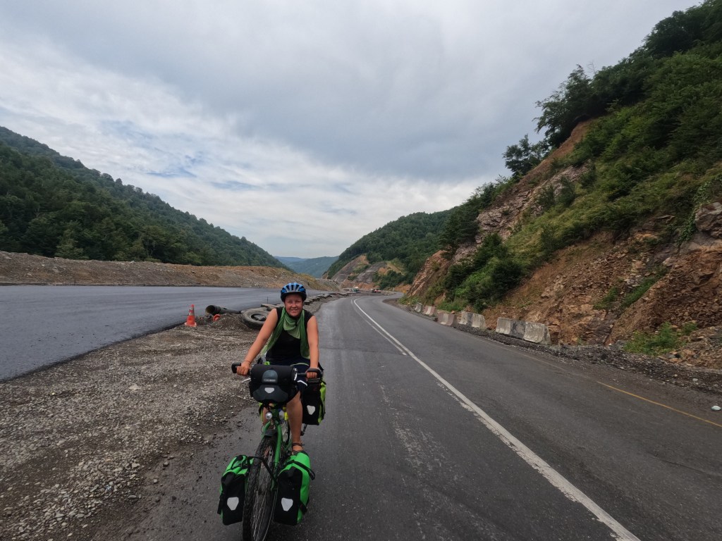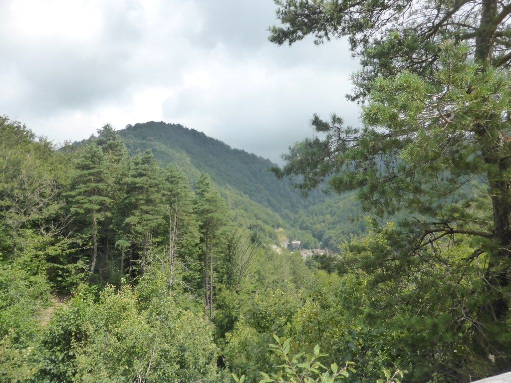 Dann ging es morgens am 28.7.23 wieder auf die große Straße durch das Tal. Den ganzen Tag über war es bewölkt, also angenehmer kühlere Temperaturen mit leichtem Nieselregen dazwischen, der uns überhaupt nicht störte.