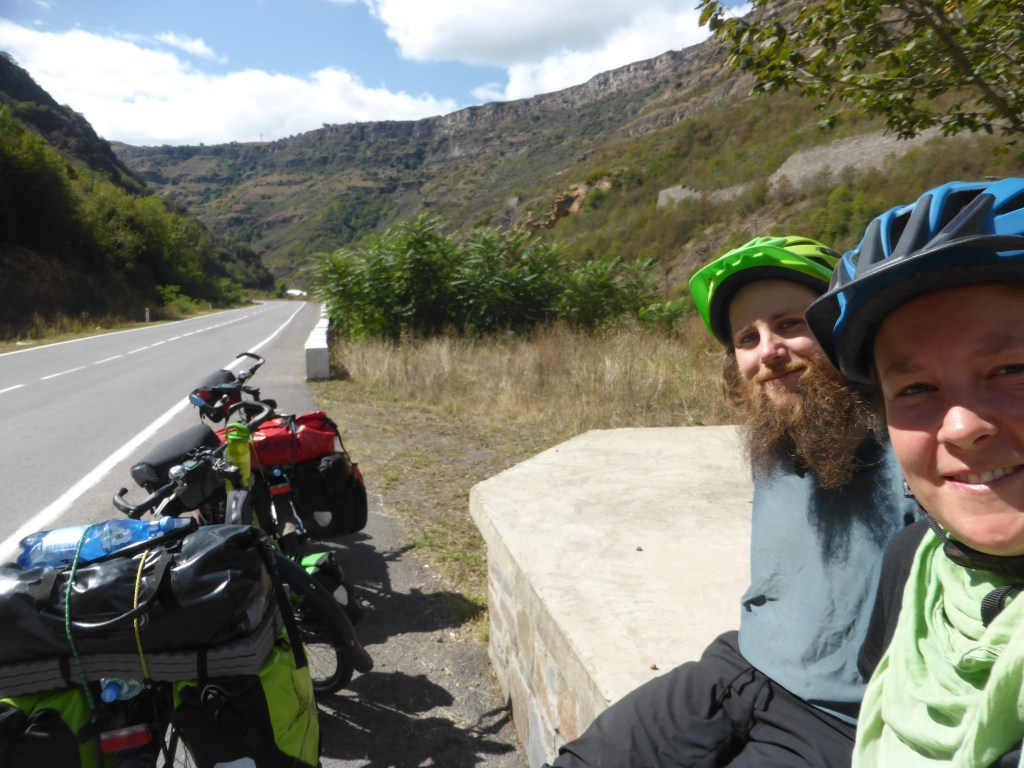 Am nächsten Morgen machten wir uns noch Frühstück in der Küche dort und radelten dann voller Energie für die Passüberquerung los. Aus Vanadzor raus wählten wir eine Schotterpiste, aber da war wenigstens wenig los.