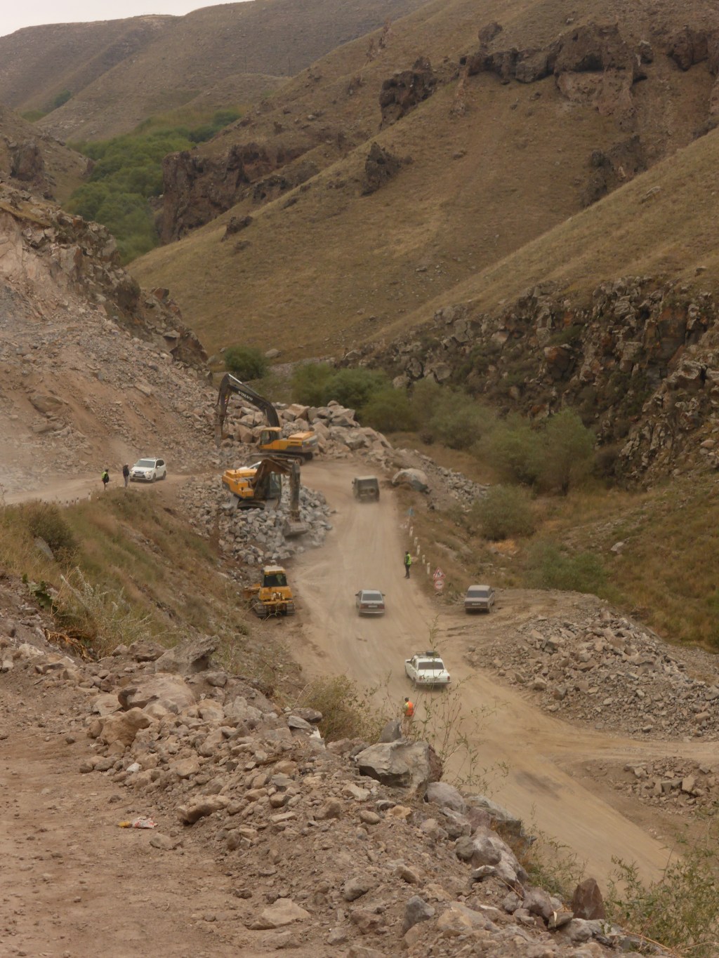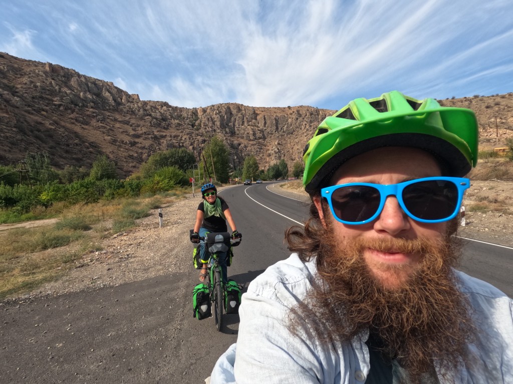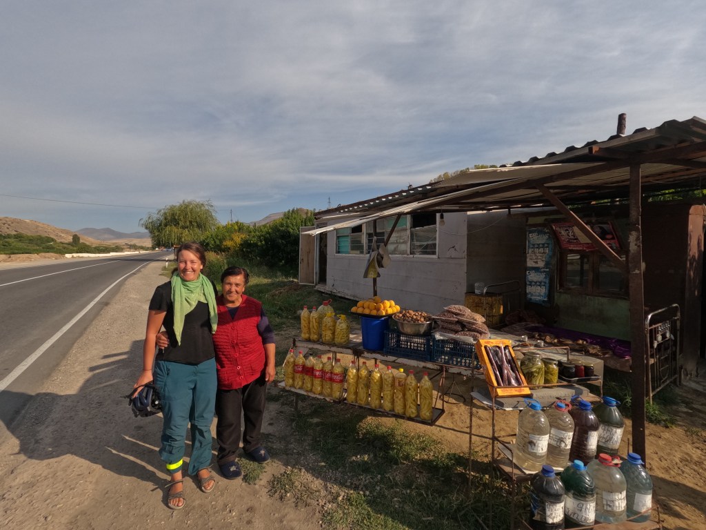 Später kamen wir in Vayk an, machten Mittagspause und beschlossen, zu versuchen, mit einem LKW über den nächsten Pass (auf 2300 Metern) bis zur nächsten Stadt, Sisian, mitzufahren. Der zweite LKW-Fahrer, den wir fragten, nahm uns direkt mit, seine Ladefläche war komplett leer. Es war ein bisschen schade, nicht selbst gefahren zu sein, aber so hatten wir eine neue Erfahrung. Bei Sisian stiegen wir vom LKW aus und wieder auf unsere Fahrräder.