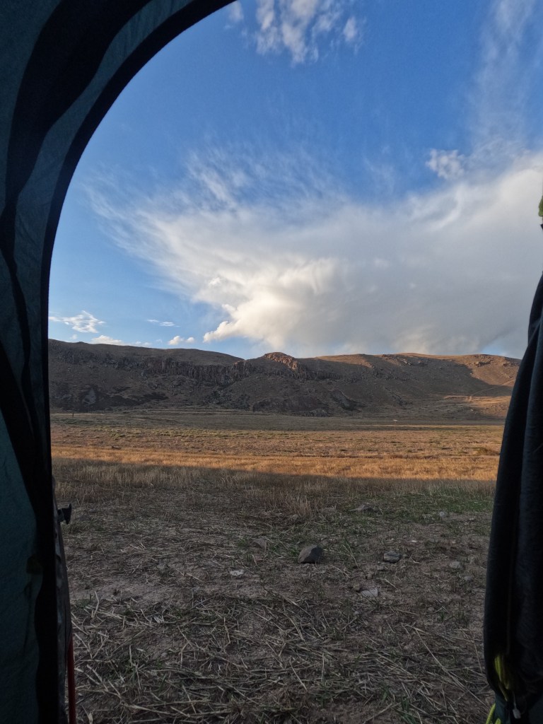 Hier waren wir nun auf 1650 Metern, der Wind blies uns entgegen, aber zum Glück ging es erstmal bergab, und wir fanden in einem verborgenen Tal wieder einen Platz fürs Zelt mit tollem Ausblick auf die Berge.