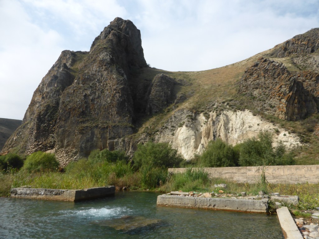 Nach dem Kaffee fuhren wir weiter, fanden in einem Laden Brot und frühstückten im Dorf Areni, in dem vielleicht der Wein erfunden wurde, weil in einer Höhle eine 6000 jahre alte, verbuddelte Amphore mit Traubensaft gefunden wurde. Weiter ging es durch einen richtig schönen Canyon am Fluss, wo es auch Hotels und Restaurants gab.