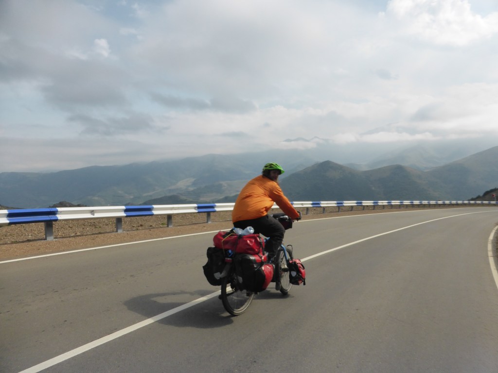 Los ging es schon früh, wir hatten uns Einiges vorgenommen für heute. Wir stellten den Wecker auf 6:30 Uhr und schafften es relativ gut raus aus den Schlafsäcken. Für uns ging es die ersten zehn Kilometer leicht bergab, einen großen Teil der Strecke jedoch durch eine Baustelle und über Schotter, da die Straße dort noch nicht fertig war.