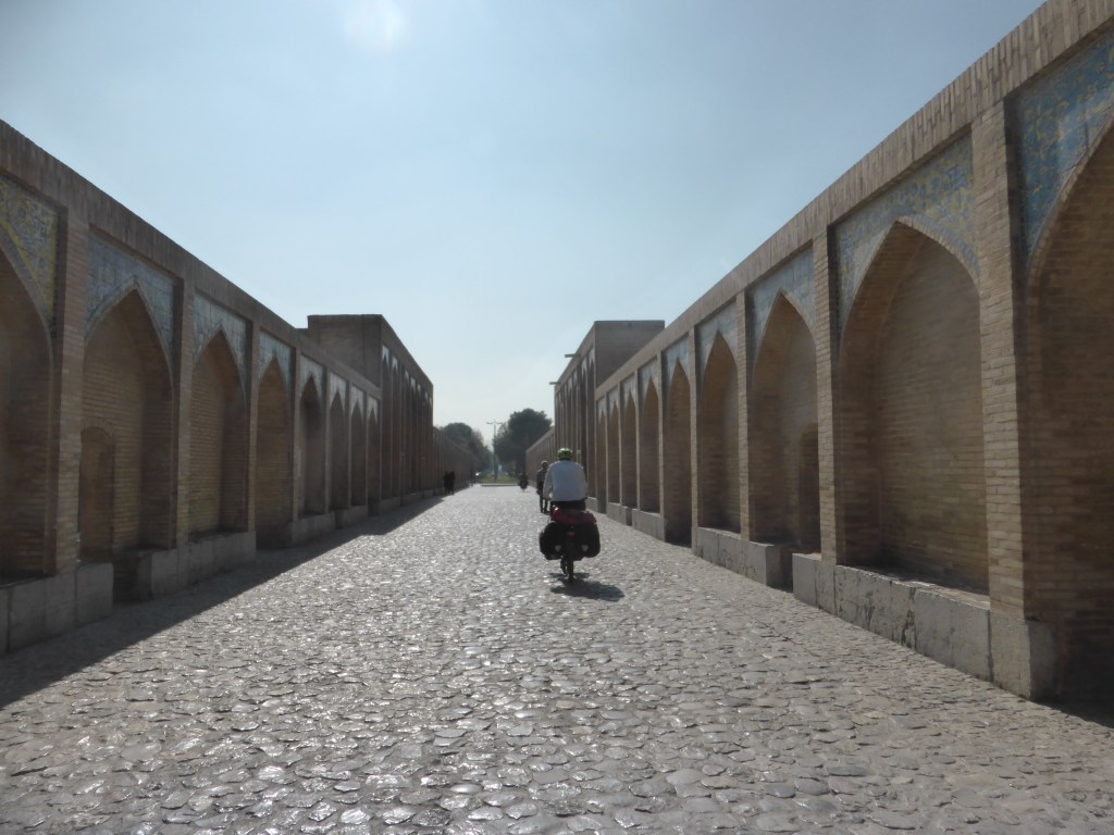 Am Dienstag, den 7.11.23 ging es endlich, nach viel zu vielen Tagen wieder auf unsere Fahrräder! Wir genossen nochmal das Frühstück im Hostel mit den anderen Radreisenden, packten alles auf die Räder, verabschiedeten uns dann von den anderen Radreisenden, und wollten schon losfahren in Richtung Süden nach Shiraz… Da kamen Maik und Simon auf das Thema „Lagerfeuer“ und dass sie das beide so gerne machen und auf Radtour noch zu wenig gemacht haben und doch super zusammen machen könnten. Maik und Hannah wollten am gleichen Tag starten, allerdings in Richtung Südosten, nach Yazd und dann erst nach Shiraz. Also beschlossen wir kurzerhand, mit den beiden mitzufahren. Wir trafen uns an einer Brücke, die wenige Kilometer entfernt war, da die beiden noch aufpacken und wir noch einkaufen wollten.