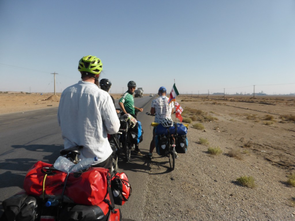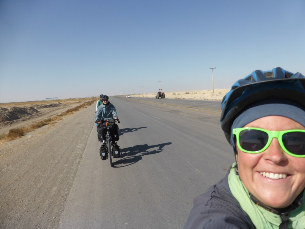 Wir starteten den nächsten Tag mit leckerem Frühstück am Zeltplatz, packten alles zusammen und fuhren wieder auf unsere schwach befahrene Straße. Es ging noch ca. 50 Kilometer mit Rüchenwind flach in Richtung Varzaneh. So hatten wir Zeit, Platz und Puste, um uns während des Radelns mit Hannah und Maik zu unterhalten.