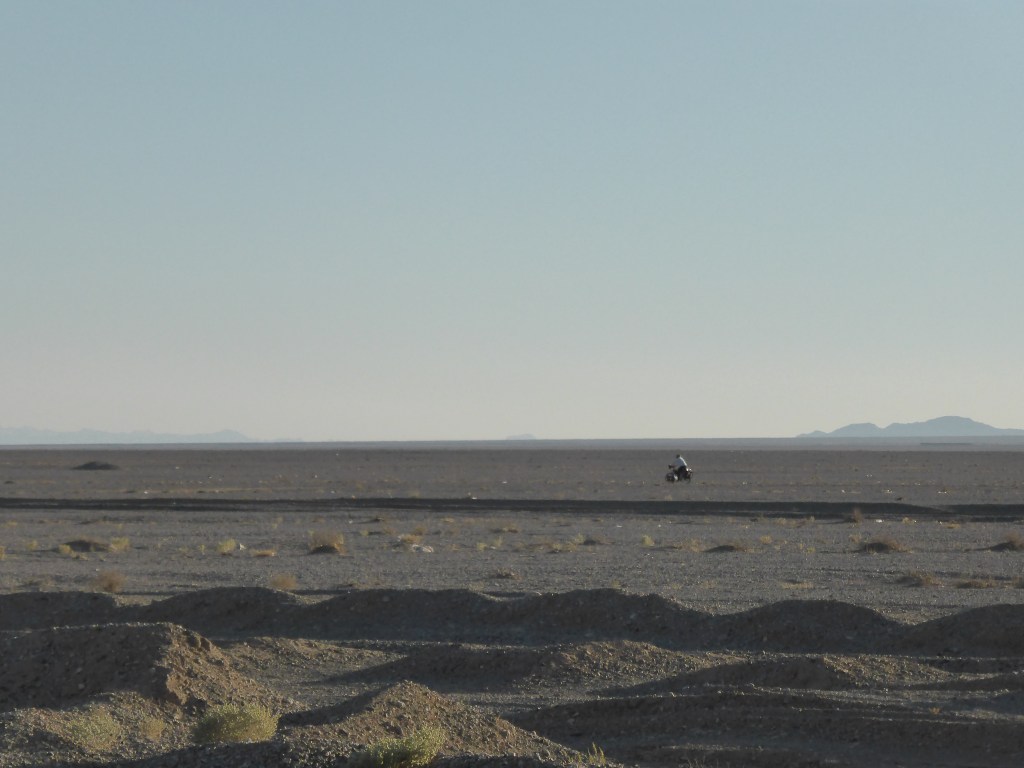 Wir fuhren aus Isfahan raus und ließen uns von Maik und Hannah führen, denn wir hatten uns ja auf eine andere Strecke vorbereitet. Zu viert wird man gefühlt noch lieber von Auto- und LKW- Fahrenden gegrüßt (vor allem angehupt) und man kann gemeinsam zurückgrüßen (winken). Uns erwartete eine flache Strecke mit nur teilweise landwirtschaftlicher Fläche am Straßenrand, es gab vor allem viel „Nichts“ in der Landschaft zu sehen…