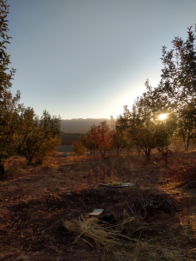 Kurz danach fanden wir eine Apfelbaumplantage und den Besitzer darin. Wir fragten, ob wir darin zelten dürften und der Besitzer willigte ein. Dann wollte er uns gerne zu sich nach Hause einladen, damit wir nicht in der kalten Nacht frieren müssen und um duschen und essen zu können. Wir waren aber wieder mal richtig glücklich draußen in der Natur und lehnten ab. Wir kochten, Hannah schlief und wir machten noch ein Lagerfeuer, ohne das es uns ziemlich kalt geworden wäre.