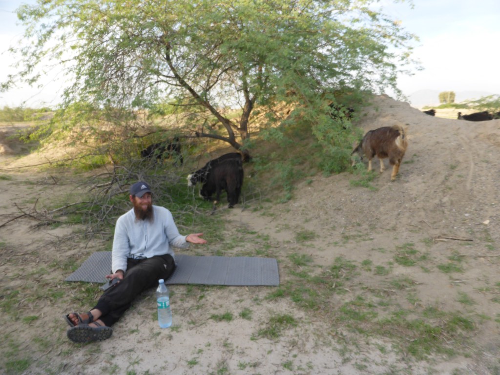 Solche Tage gibt es eben auch, man fährt einfach durch eine gleichbleibende Landschaft und freut sich auf das was da noch kommen wird. Nachmittags machten wir mal eine kleine Pause um uns ein Stück Kuchen zu teilen, Kuchen ist immer gut! Und um ca. 15.30 Uhr fanden wir in etwas Entfernung zu Hauptstraße und Dörfern einen guten Platz für die Nacht. Bei Sonnenuntergang kam noch eine Herde Ziegen vorbei.