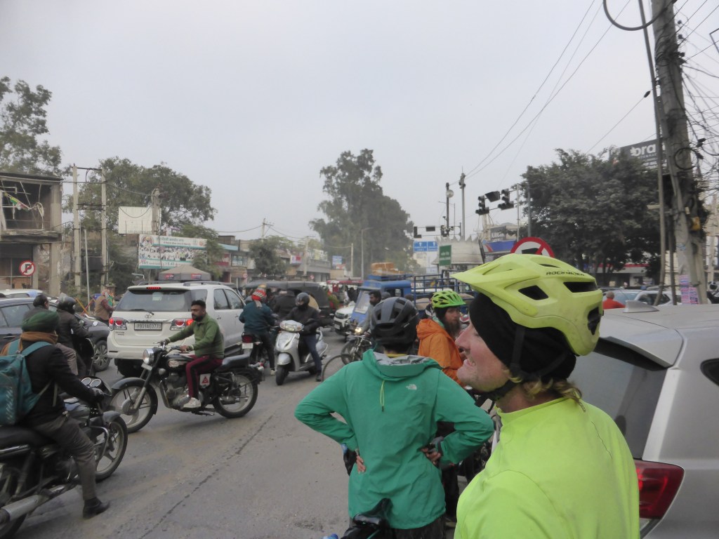 Nach dem ersten Mal Passport zeigen in Indien bekamen wir Begleitung von einem Grenzbeamten auf nem Fahrrad bis zu den nächsten dreimal Passport zeigen. Und dann hatten wir es wirklich nach Indien mit dem Fahrrad (und Bus durch Pakistan) geschafft! Erstmal ließen wir alle Eindrücke auf uns wirken: die Menschen, die Läden, die Autos, die Vegetation,…