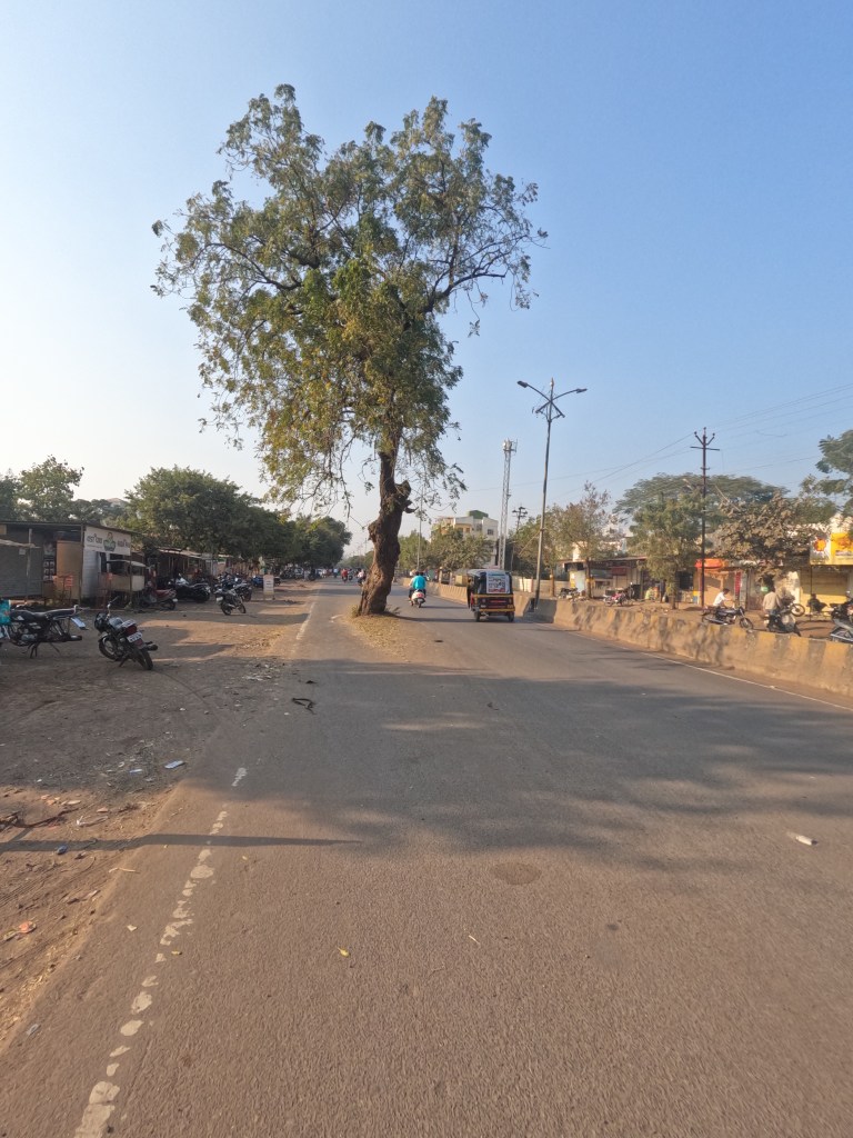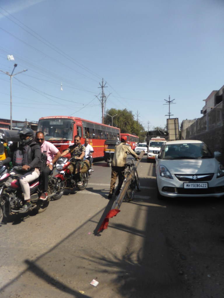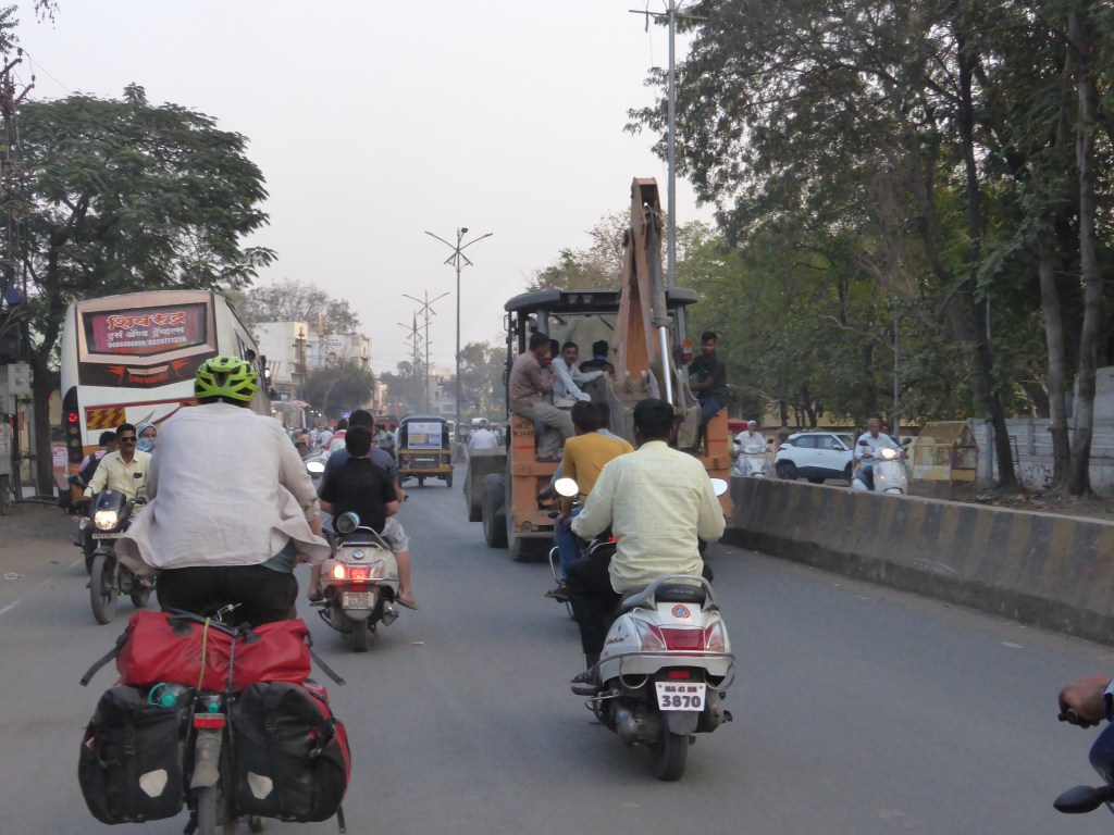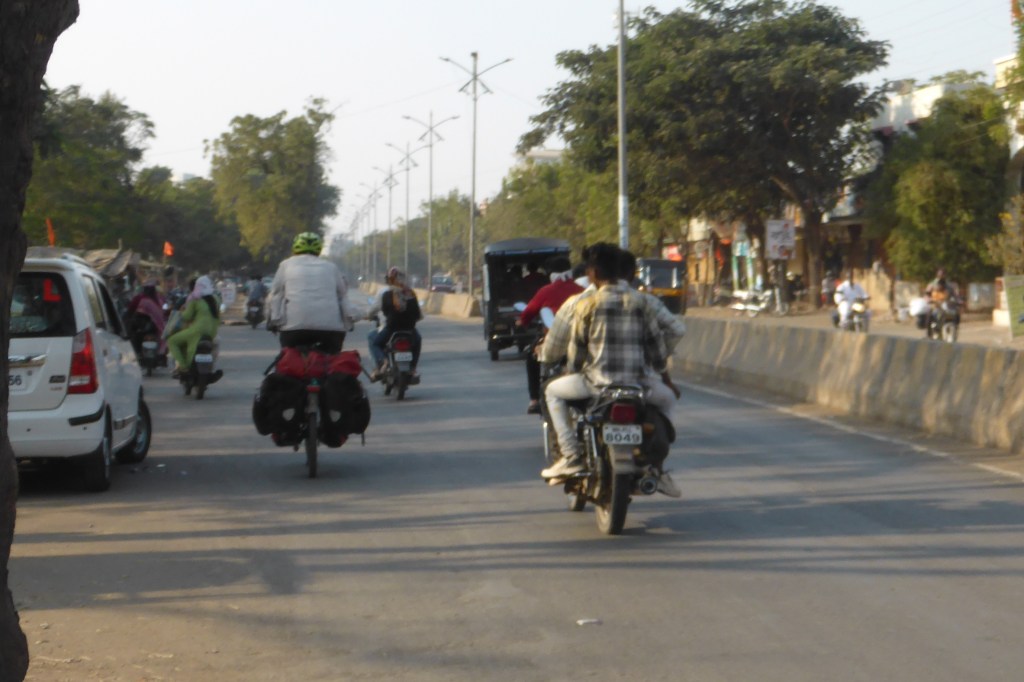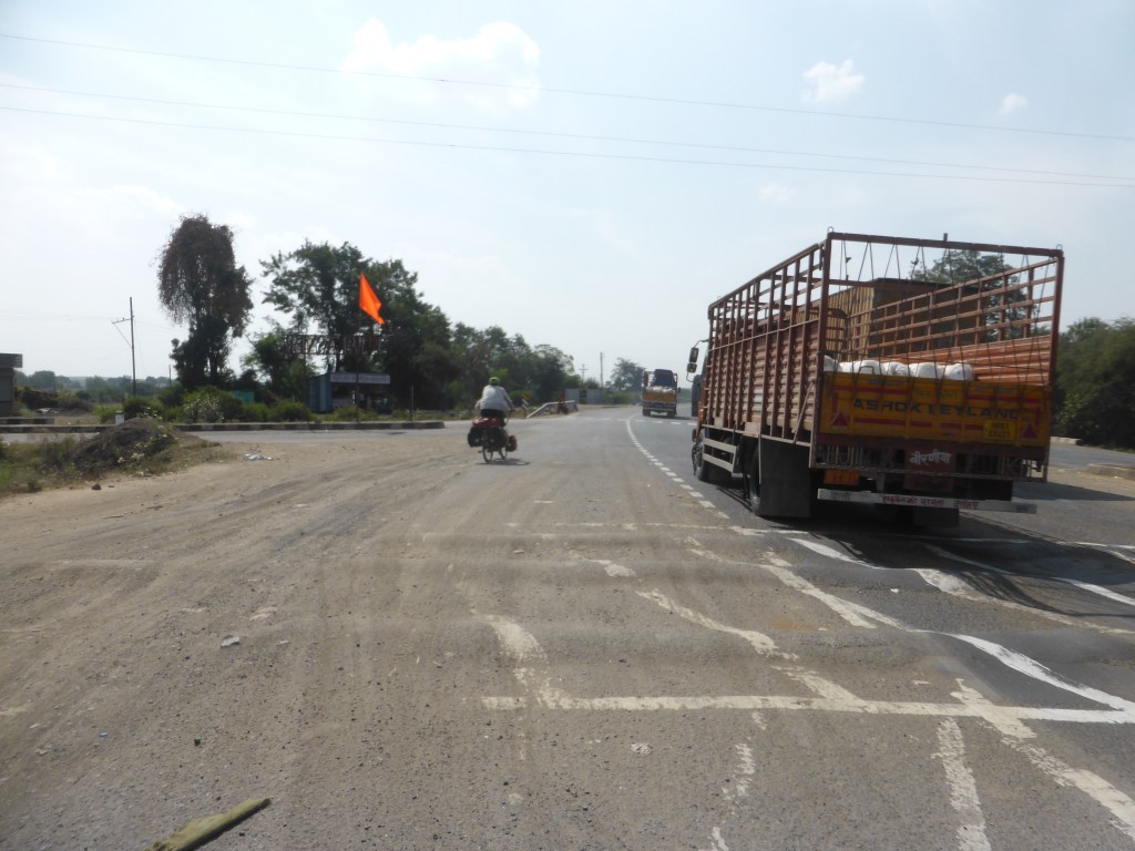 Wir fuhren also und versuchten, nicht jeden Kraftfahrzeugführenden anzumotzen, der schlecht fuhr, aber es sollte noch schlimmer werden. Die Landschaft war nicht spannend und wir waren auch nicht in der Stimmung, Bilder zu machen. Wir wollten/sollten nach Malegaon, verpassten aber wohl die richtige Einfahrt in diese Stadt, sodass wir einen großen Umweg fahren mussten, um in die Stadt zu fahren.