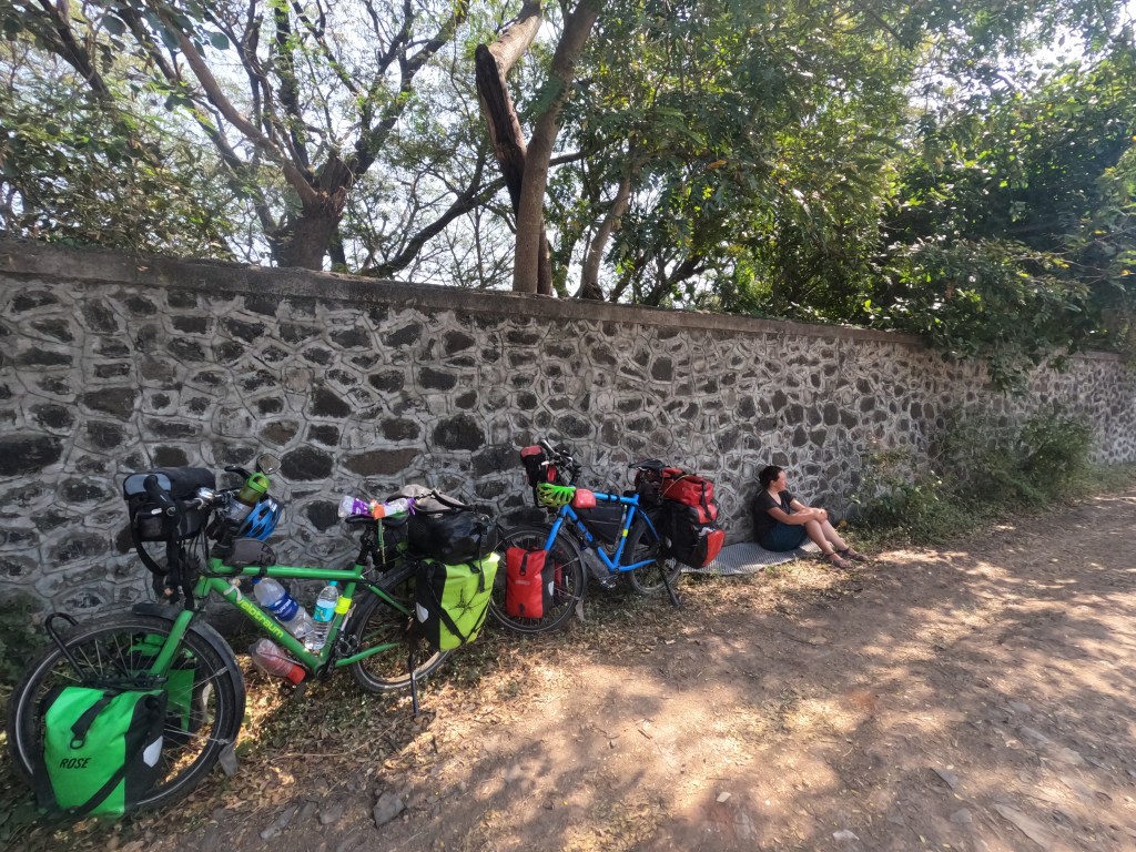 Wir fuhren an ziemlich vielen voll beladenen Zwiebeltransportern vorbei. Da es schon wieder mindestens 30 Grad im Schatten hatte, die Pos von 8 Tagen ohne Pause wehtat, es bergauf ging, und wir ja quasi wieder wussten, wo wir schlafen werden, gönnten wir uns eine richtig lange Mittagspause im Schatten, das war ziemlich gut!