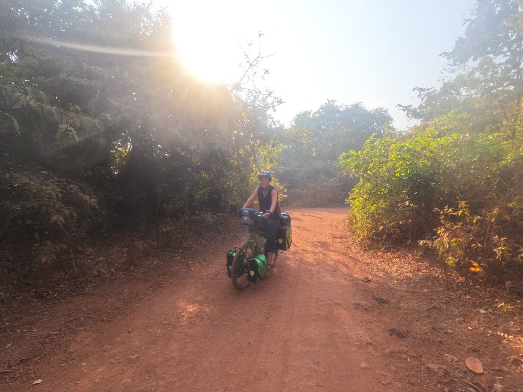 Am Donnerstag klingelt der Wecker wieder früh, wir frühstücken Brot im Zimmer und radeln schon ab acht Uhr durch das noch kühle Indien. Heute waren die Aussichten ziemlich unterschiedlich, aber meistens ziemlich grün. Direkt am Morgen ging es erstmal 250 Höhenmeter hinauf, auch bei nur 20 Grad Celsius waren wir völlig durchgeschwitzt, daher gibt nur ein Bild vom Ausblick 😉