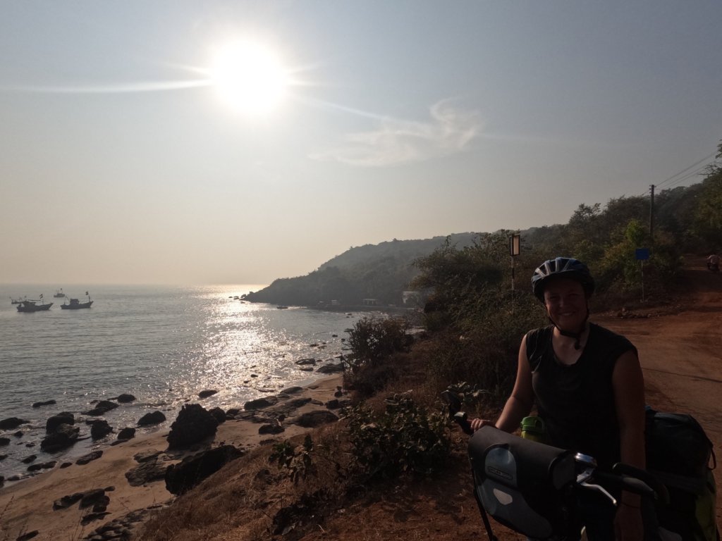 am indischen Ozean entlang in Richtung Süden. Und dann sahen wir plötzlich zwei Fahrräder am Straßenrand stehen und trafen Lilly und Aire aus Indien/Italien, die auf dem Weg von Südindien (Tamil Nadu) nach Italien sind. Da wir in die entgegengesetzte Richtung unterwegs sind, konnten wir uns gegenseitig Tipps zur Route geben und ein bisschen übers Radreisen reden. Die beiden sind ja quasi noch am Anfang ihrer Tour und wir schon mittendrin!