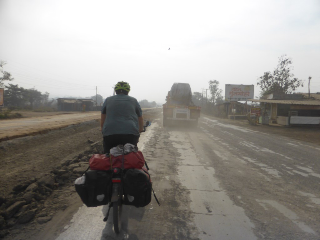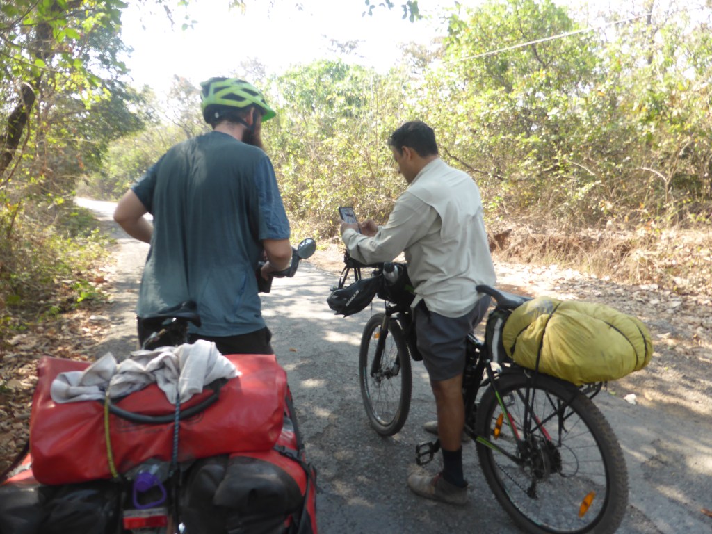 Am Ende des Tages biegen wir vom Highway ab auf kleinere Straßen, um an die Küste zu kommen. Dort sollen die Straßen zwar auch nicht so gut sein, aber wenigstens nennen sie sich nicht Highway! Wir trauen uns immer noch nicht zu zelten und finden ein Zimmer in einem kleinen Hotel in Goregaon, wo wir uns über die Dusche freuen und den ganzen Straßenstaub abwaschen können. Als wir im dazugehörigen Restaurant zu Abend essen, sitzen zwei junge Männer an einem anderen Tisch und schauen in der Gegend rum. Als wir fertig mit Essen sind, fragen sie uns – nach einem Selfie… Na klaro, frisch geduscht und gestärkt machen wir das doch gerne. Dann geht es schlafen.