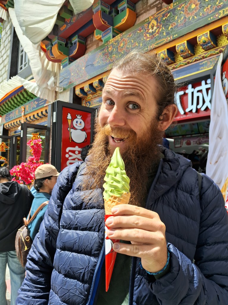 Wir sind die vier einzigen Gäste beim Frühstücksbuffet, das uns heute aber nicht überzeugt. Die Toasts wurden getoastet und warmgehalten, dazu gibt es Spiegelei, Bacon, Pak Choi, Obst und Gemüse, Kaffee, Tee, Milch und Saft. Dann hatten wir noch etwas Zeit, bevor wir um 12 Uhr auschecken mussten, die nutzte Simon für nen Vormittagsschlaf. Nach 12 Uhr machten wir uns auf, DIE Sehenswürdigkeiten von Lhasa zu besichtigen.