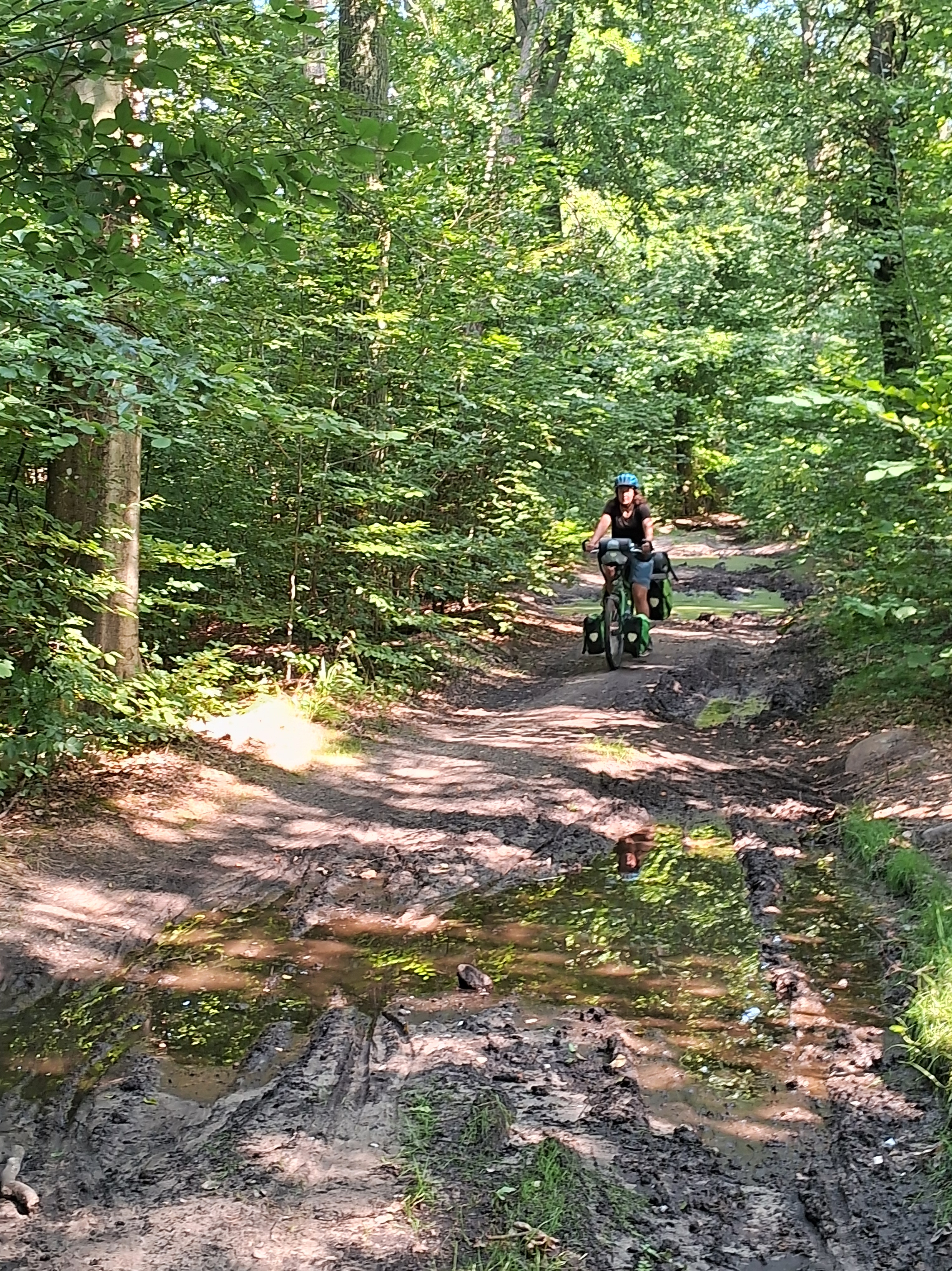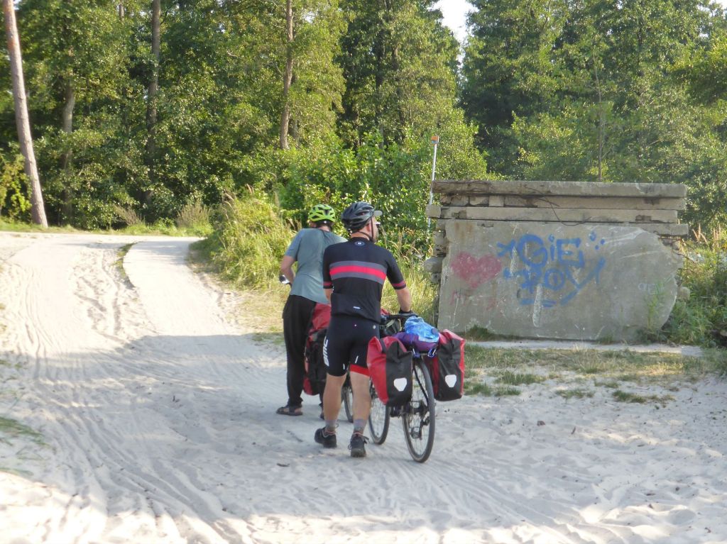 Am Rande Danzigs fuhren wir an touristischen Straßen vorbei, und dann mit kleinen Schlenkern durch den Wald, dort wurde der Weg immer schmaler und welliger, wir hatten teilweise Spaß, über die Wurzeln und die sandigen Stellen zu fahren.