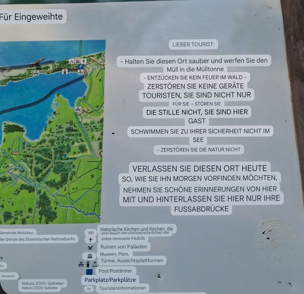 Dann kam ein Mann in seinem Auto vorbei, der uns auf polnisch erklärte, dass wir hier kein Feuer machen dürfen und dass die Zelte nicht links von der Hütte (im eingezäunten Bereich) stehen dürfen, sondern nur rechts daneben auf dem Parkplatz (keine 20 Meter Meter weiter) und dass das alles dort auf der Tafel stünde (auf polnisch).