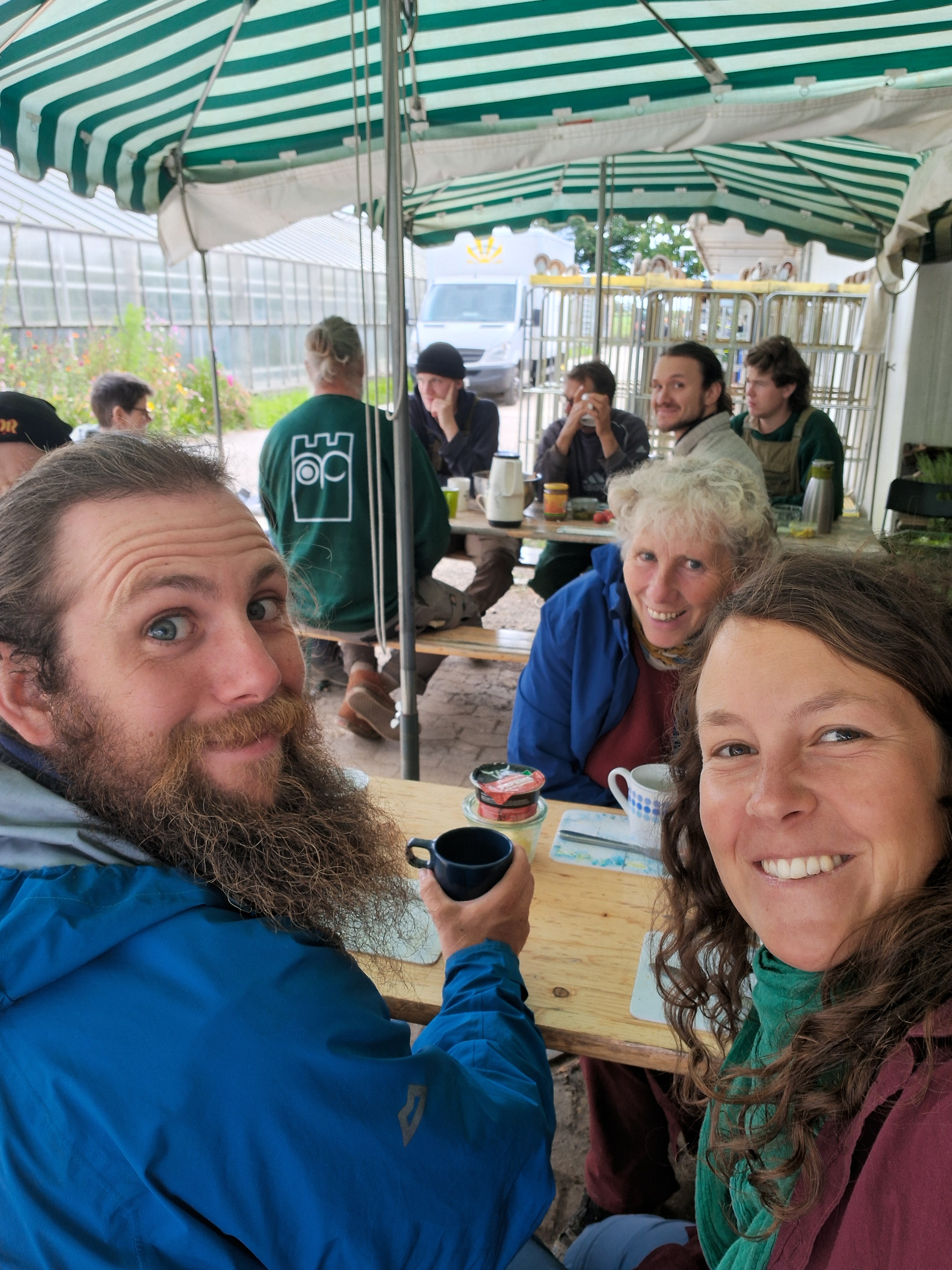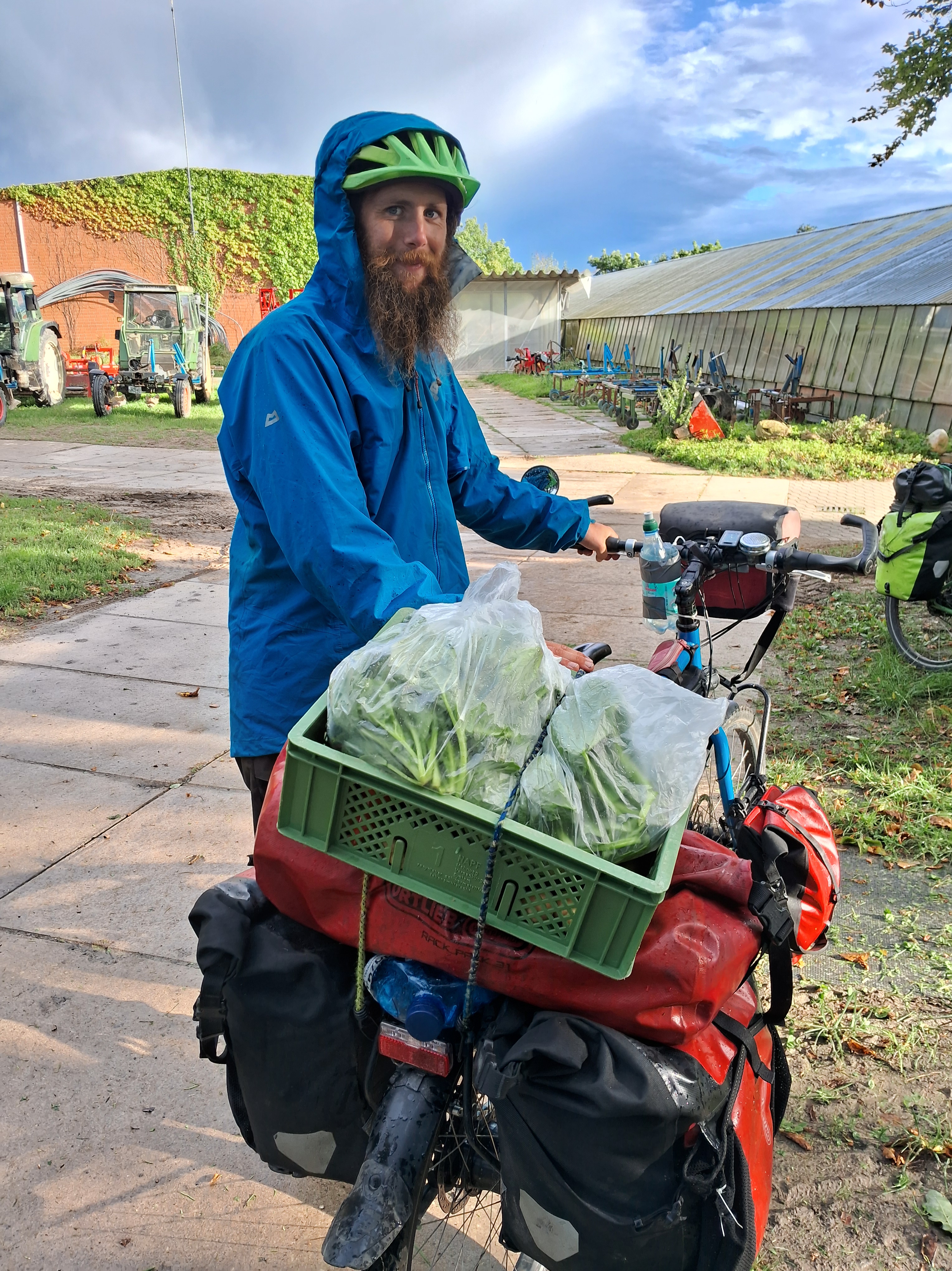 Nach Feierabend unterhielten wir uns noch mit den Kolleg*innen bei einem Glas Limo in der Gärtnerei über das Gemüse, die Maschinen und was so passiert ist in der letzten Zeit. Abends kochten wir bei unseren warmshowers-hosts, die gleichzeitig Simons Eltern sind, leckerste Kartoffeln mit noch leckererem Spinat!